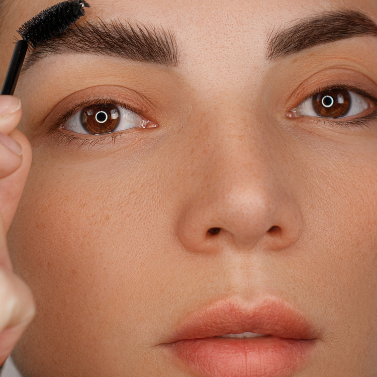 3. Kurz trocknen lassen, danach wie gewohnt mit Stift, Puder oder Gel ergänzen